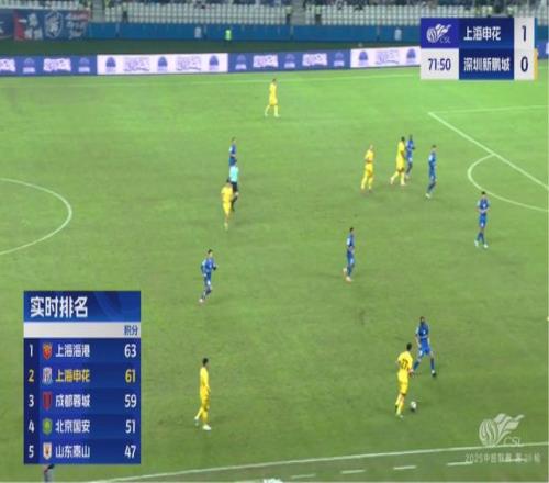 申花半场结束前,另一场比赛又传来进球的消息,成都蓉城在下半场刚开球就被河南队扳平了比分。