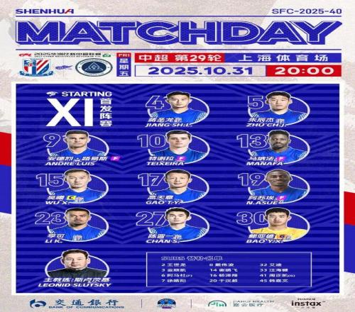 10月31日,中超第29轮,上海申花主场迎战深圳新鹏城。依靠路易斯的闪电破门,申花1比0延续夺冠希望,由于另一场比赛成都蓉城输球后彻底无缘争冠。本赛季中超冠军已经确定归属上海!