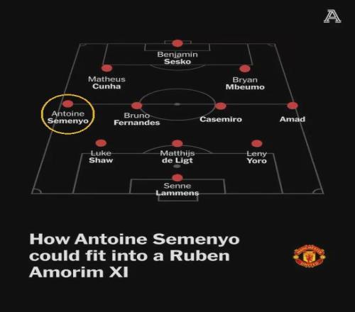 当然,如果阿莫林落实了换四后卫的想法(改打4231),曼联也完全能把塞门约、库尼亚、姆伯莫、谢什科这四名攻击手同时塞入首发。