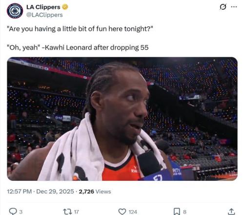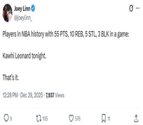 轰55分11板5断3帽,小卡成NBA历史首人!快船斩东部第一豪取4连胜