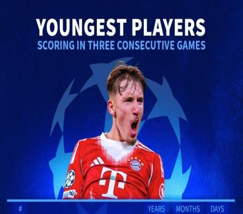 欧冠改制后连续3场破门最年轻榜单:17岁卡尔居首,姆巴佩次席 -